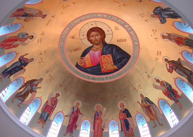 This wonderful, light-flooded church design is based on the 5th Century Church of the Theotokos in Gerazim, Syria and named for the 6th Century Patroness of the St. Katherine Monastery at Mount Sinai. Like the steeple in Western Church Architecture or the identification of the Minaret with Islamic Mosques, the dome which adorns this structure is an archeform emblematic of Eastern Orthodox Ecclesiastical Architecture. In theology, such a dome is the proclamation of the geometry of the volumetric circle, symbolizing heaven’s eternity, the compassion and inclusiveness of God’s unceasing love and holistic expansiveness. It is a 360 degree receptacle of light, providing God’s illumination to the interior of the church. After all God is light and without light there is no life. Thus the illumination of God’s grace is felt in the worship here both spiritually and physically. Octagonal in plan, this crowning proclamation of Heaven on Earth hoists its dome 55’ above the floor with the ambulatory and perimeter excedras layering this great central space and creating a volumetric composition that evokes the mysteries and hope of the great founders of the One Holy Orthodox and Apostolic Church.