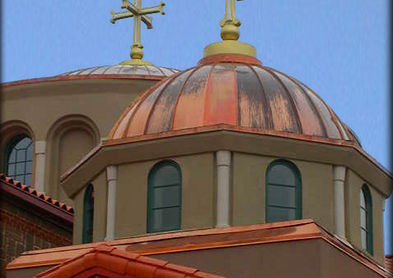 The new 10,500 sq. ft. plus church was constructed using a combination of Dufferin Stone masonry veneer and brick, while the accompanying 600-seat outdoor amphitheater was built using the complementary stone materials. The copper dome rising 62 feet crowns the sanctuary and is topped with a 9 foot high gold and silver metallic, 6th century Justinian Cross.